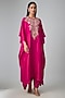 Featuring a pink kaftan in silk base with thread work. It is paired with palazzo. Accentuate it with polki earrings and block heels for festive celebrations or pooja ceremony.