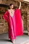 Jayanti Reddy showcases a pink kaftan in silk base with zardosi embroidery. It is paired with palazzo. Style this designer essemble with meenakari earrings, a potli bag and metallic heels for a festive celebration, pooja or sangeet ceremony.