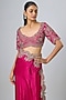 Featuring a pink saree in silk base with zardosi embroidery. It is paired with a blouse. Accentuate with statement earrings and heels for festive occasions or wedding ceremonies.