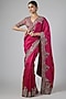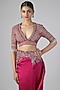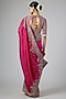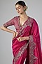 Featuring a pink saree in silk base with zardosi embroidery. It is paired with an embroidered blouse. Accentuate it with statement jewellery, a low bun and heels for a wedding, sangeet or engagement ceremony.