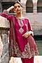 Jayanti Reddy showcases a pink tunic in silk base with zardosi embroidery. It is paired with dhoti and a dupatta. Style this designer essemble with meenakari earrings, a potli bag and metallic heels for a festive celebration or sangeet ceremony.