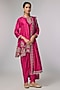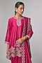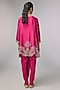 Featuring a pink kurta in silk base with zardosi work. It is paired with a dhoti and an embroidered dupatta. Style this with kundan polki jewellery and heels for a festive occasion, poojas or family gatherings.