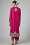 Featuring a pink kurta in silk base with zardosi work. It is paired with salwar pants. Accentuate it with dangler earrings and juttis for a festive occasion, wedding, sangeet or intimate pooja ceremony.