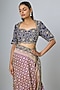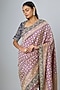 Featuring a purple saree in banarasi base with zardosi embroidery. It is paired with a blouse. Accentuate with statement earrings and heels for festive occasions or wedding ceremonies.