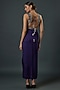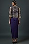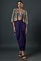 Featuring a purple cape in organza base with zardosi embroidery. It is paired with an embroidered blouse and a wrap skirt. Accentuate it with statement jewellery and heels for a wedding or sangeet ceremony.