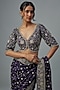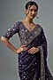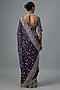 Featuring a purple saree in organza base with zardosi embroidery. It is paired with a blouse. Accentuate with statement jewellery and heels for a wedding, sangeet or engagement ceremony.