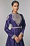 Featuring a purple anarkali in raw silk and silk base with thread work. Accentuate it with kundan polki earrings, a clutch and metallic heels for a stylish ensemble, ideal for festive occasions, cultural celebrations or sangeet ceremonies.