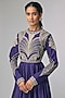 Featuring a purple anarkali in raw silk and silk base with thread work. Accentuate it with kundan polki earrings, a clutch and metallic heels for a stylish ensemble, ideal for festive occasions, cultural celebrations or sangeet ceremonies.