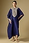 Jayanti Reddy features a stunning purple kaftan, which is crafted in silk fabric with embroidery. Accessorise the designer kaftan with polki jewellery and heels for festive occasion, family gatherings or sangeet ceremony.