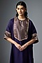 Featuring a purple kaftan in silk base with banarasi border. It is paired with palazzo pants. Accentuate it with polki stud earrings and block heels for family gatherings or festive ceremonies.