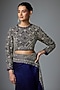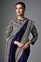 Featuring a purple saree in silk base with zardosi embroidery. It is paired with an embroidered blouse. Accentuate it with kundan polki jewellery and heels for festive occasions or wedding ceremony.
