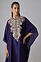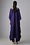 Featuring a purple kaftan in silk base. It is paired with pants. Style it with statement earrings, soft curls and block heels, perfect for festive gatherings.