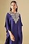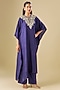 Featuring a purple kaftan in silk base with zardosi embroidery. It is paired with palazzo pants. Accentuate with statement earrings and heels for festive ceremonies.