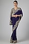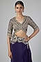 Featuring a purple saree in silk base with zardosi embroidery. It is paired with an embroidered blouse. Accentuate it with statement jewellery, a low bun and heels for a wedding, sangeet or engagement ceremony.