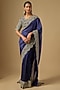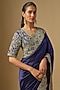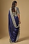 Featuring a purple saree in silk base with zardosi work. It is paired with a blouse. Accentuate it with statement jewellery and embellished heels for a reception, wedding, engagement or sangeet ceremony.