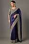 Featuring a purple saree in silk base with zardosi work. It is paired a blouse. Accentuate it with statement jewellery, low bun and heels for a festive occasion, reception, sangeet, wedding or engagement ceremony.