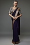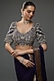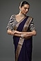 Featuring a purple saree in silk base with banarasi border and zari embroidery. It is paired with an embroidered blouse. Accentuate with statement jewellery and heels for a wedding or engagement ceremony.