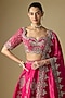Jayanti Reddy features a stunning rani pink lehenga set, which is crafted in raw silk fabric with embroidery. It is paired with an embroidered blouse and a dupatta. Accessorise the designer set with polki jewellery and heels for an engagement or wedding ceremony.