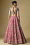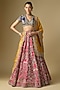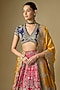 Jayanti Reddy features a stunning rani pink lehenga set, which is crafted in raw silk fabric with embroidery. It is paired with a purple embroidered blouse and a dupatta. Accessorise the designer set with polki jewellery and heels for an engagement or wedding ceremony.