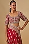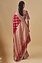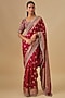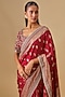 Featuring a red saree in banarasi silk base with zardosi embroidery. It is paired with an embroidered blouse. Accentuate it with dangler earrings and heels for a festive occasions or wedding ceremonies.