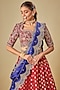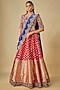 Featuring a red lehenga in banarasi base with zardosi embroidery. It is paired with an embroidered blouse and a blue dupatta. Accentuate it with statement earrings and heels for a wedding, sangeet or engagement ceremony.