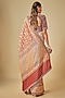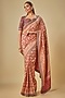 Featuring a red saree in banarasi base with zardosi embroidery. It is paired with an embroidered blouse. Accentuate it with statement earrings and heels for a wedding, sangeet or engagement ceremony.