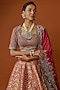 Featuring a red lehenga in banarasi base with zari embroidery. It is paired with an embroidered blouse and an embroidered dupatta. Accentuate this designer lehenga with statement jewellery and heels for a bridal look.