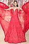 Featuring a red lehenga in net base with thread and beads hand embroidery. It is paired with an embroidered corset and an embroidered cape. Accentuate the designer lehenga with emerald or zircon jewellery, embellished heels and a clutch for a bridal look, Perfect wear for destination weddings, engagement or sangeet ceremony.