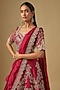Featuring a red lehenga in raw silk base with zardosi embroidery. It is paired with an embroidered blouse and a dupatta. Accentuate it with zircon jewellery, embellished heels and a potli for a wedding or engagement ceremony.