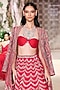 Featuring a red lehenga in raw silk base with zardosi hand embroidery. It is paired with an embroidered bustier and an embroidered jacket. Accentuate the designer lehenga with kundan polki or zircon jewellery, embellished heels and a potli bag for a bridal look, Perfect wear for destination weddings, engagement or sangeet ceremony.