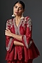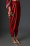Featuring a red peplum top in silk base with zari embroidery. It is paired with matching dhoti pants.