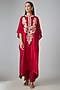 Featuring a red kaftan in silk base with thread work. It is paired with palazzo. Accentuate it with polki earrings and block heels for festive celebrations or pooja ceremony.