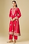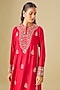 Featuring a red kurta in silk base with zardosi embroidery. It is paired with palazzo pants. Accentuate with statement earrings and heels for festive ceremonies.