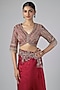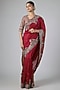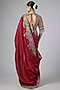 Featuring a red saree in silk base with zardosi embroidery. It is paired with an embroidered blouse. Accentuate it with statement jewellery, a low bun and heels for a wedding, sangeet or engagement ceremony.