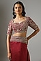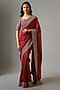 Featuring a red saree in silk base with zardosi embroidery. It is paired with an embroidered blouse. Accessorize it with statement jewellery and heels for weddings or sangeet ceremonies.
