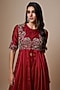 Featuring a red anarkali in silk base with zari embroidery. It is paired with palazzo pants. Accentuate with statement jewellery and heels for a complete festive ready-look.