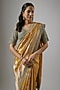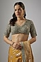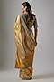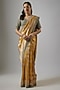 Featuring a yellow saree in banarasi base. It is paired with a blouse having zardosi embroidery. Accentuate with statement earrings and heels for pre-wedding or haldi ceremonies.