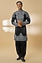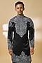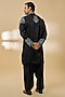Featuring a black kurta in silk base. It is paired with pants. Style it up with a stole and mojaris for a festive occasion, wedding or sangeet ceremony.