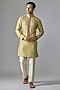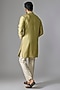 Featuring a light olive kurta in silk base. It is paired with pants. Style it with kolhapuri sandals and a festive occasion, mehendi, wedding or engagement ceremony.
