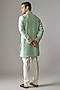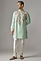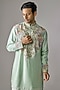 Featuring a mint kurta in silk base. It is paired with pants. Style it with kolhapuri sandals and a festive occasion, mehendi, wedding or engagement ceremony.