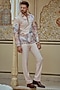 Featuring a multi-colored bomber jacket in boomario fabric base with applique, threadwork and hand embroidery. It is paired with pants. Style with shoes and a watch for a complete look, exuding charm and elegance.