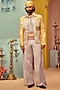 Featuring a multi-colored bomber jacket in silk base. It is paired with a shirt and pants. Style it with a pair of shoes for a reception, haldi, engagement or sangeet ceremony.