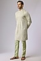 Featuring a mint kurta in silk base. It is paired with pants. Style it with mojaris for a festive occasion or wedding ceremony.