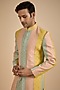 Featuring a multi-colored sherwani in lucknowi fabric base. Perfect wear for sangeet or engagement ceremonies.