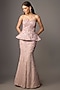 Featuring a baby pink mermaid lehenga in net base with crystal embellishments. It is paired with a net and organza peplum top having a sculpted strapless bodice. Accentuate it with zircon dangler earrings, a clutch and high heels, perfect for a cocktail, reception or high-fashion events.