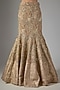 Featuring a blush pink and golden copper lehenga in shimmer georgette, soft net and hard net base. It is paired with a top and a detachable frill. Accessorise this designer set with drop earrings, block heels and a clutch, perfect for cocktail soirees or sangeet ceremony.