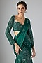 Featuring an emerald green draped lehenga saree in soft net and satin georgette base. it is paired with a blouse. Accentuate it with diamond jewellery and heels for a mehendi, wedding, engagement or sangeet ceremony.
