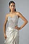 Featuring a grey draped lehenga saree in soft net and fabric base. it is paired with a blouse. Accentuate it with diamond jewellery and heels for a wedding, engagement or sangeet ceremony.