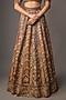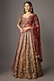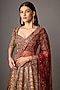 Featuring a maroon lehenga in silk base with gold embroidery. It is paired with a net embroidered blouse and a dupatta. Accentuate it with kundan polki jewellery, potli bag and block heels for a wedding or engagement ceremony.