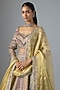 Featuring a multi-colored lehenga in tissue and tissue organza base with a cancan. it is paired with a blouse and a dupatta. Accentuate it with statement jewellery, floral low bun and heels for a wedding, engagement or sangeet ceremony.